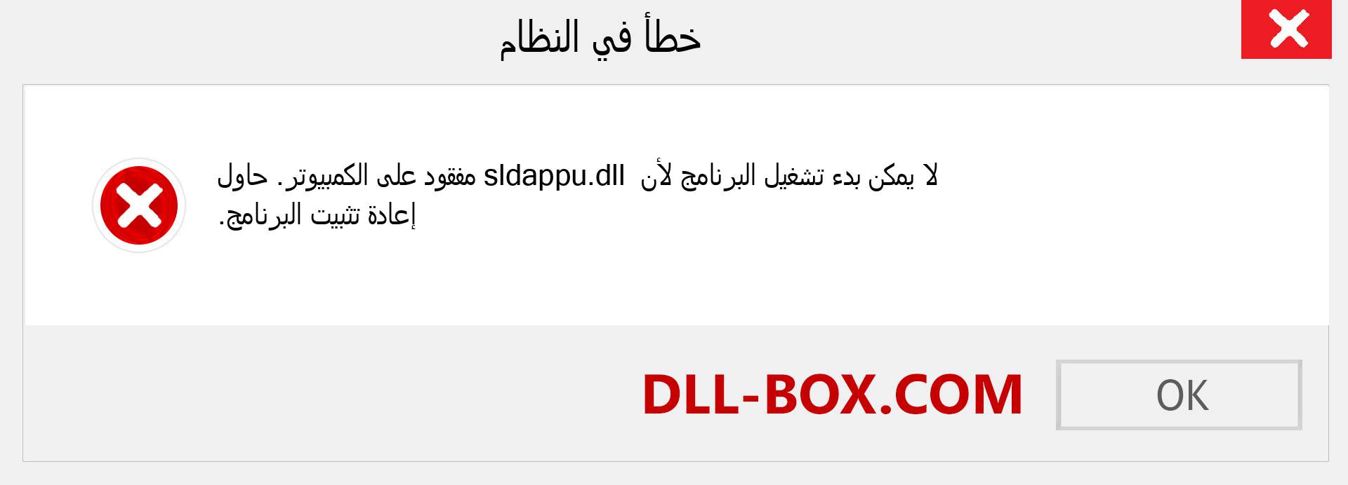 1. لا يمكن بدء تشغيل البرنامج لأن sldappu.dll مفقود من جهاز الكمبيوتر الخاص بك. الرجاء إعادة تحميل البرنامج \ التطبيق لعلاج هذه المشكلة.